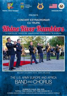 Concertul sustinut de trupa RHINE RIVER RAMBLERS a fortelor terestre americane stationate in Europa este organizat in parteneriat cu Ambasada SUA la Bucuresti si va include melodii celebre interpretate in maniera dixie, considerat a fi primul stil de jazz orchestral, aparut la inceputul secolului XX, si caracterizat prin improvizatia colectiva a grupului de suflatori. ”Cabaret”, ”Mercy, Mercy, Mercy”, ”Georgia on My Mind”, ”Amazing Grace” sunt doar cateva dintre piesele binecunoscute care vor putea fi ascultate intr-o orchestratie care va va purta in atmosfera boema a anilor '30 - '40 din New Orleans, orasul-simbol pentru acest stil muzical, intr-o perioada speciala pentru cultura si istoria Americii.